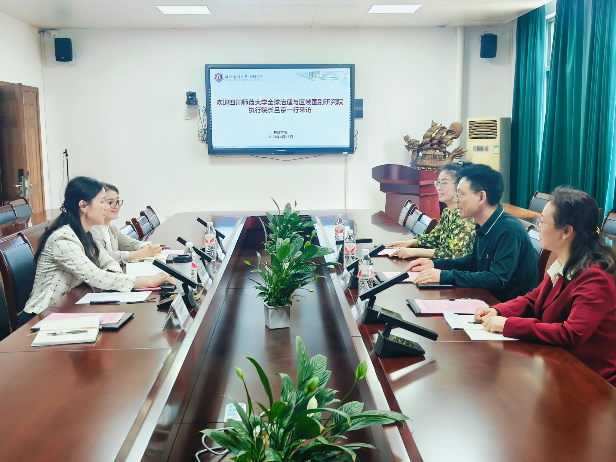 4月23日上午,四川师范大学全球治理与区域国别研究院执行院长一行来皇冠官网 访问交流。皇冠官网 董超群副院长、朱晓玲老师及教学办相关老师参加会议。